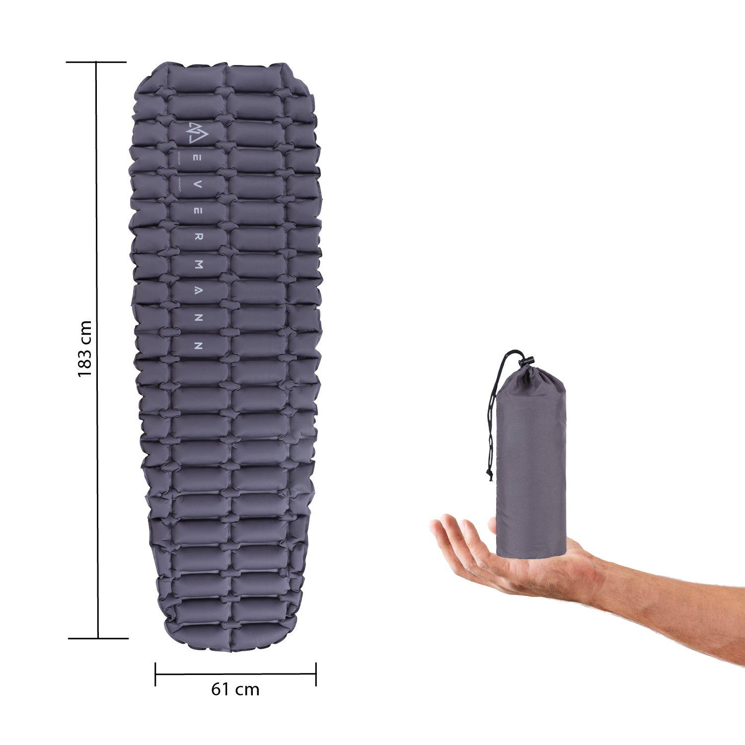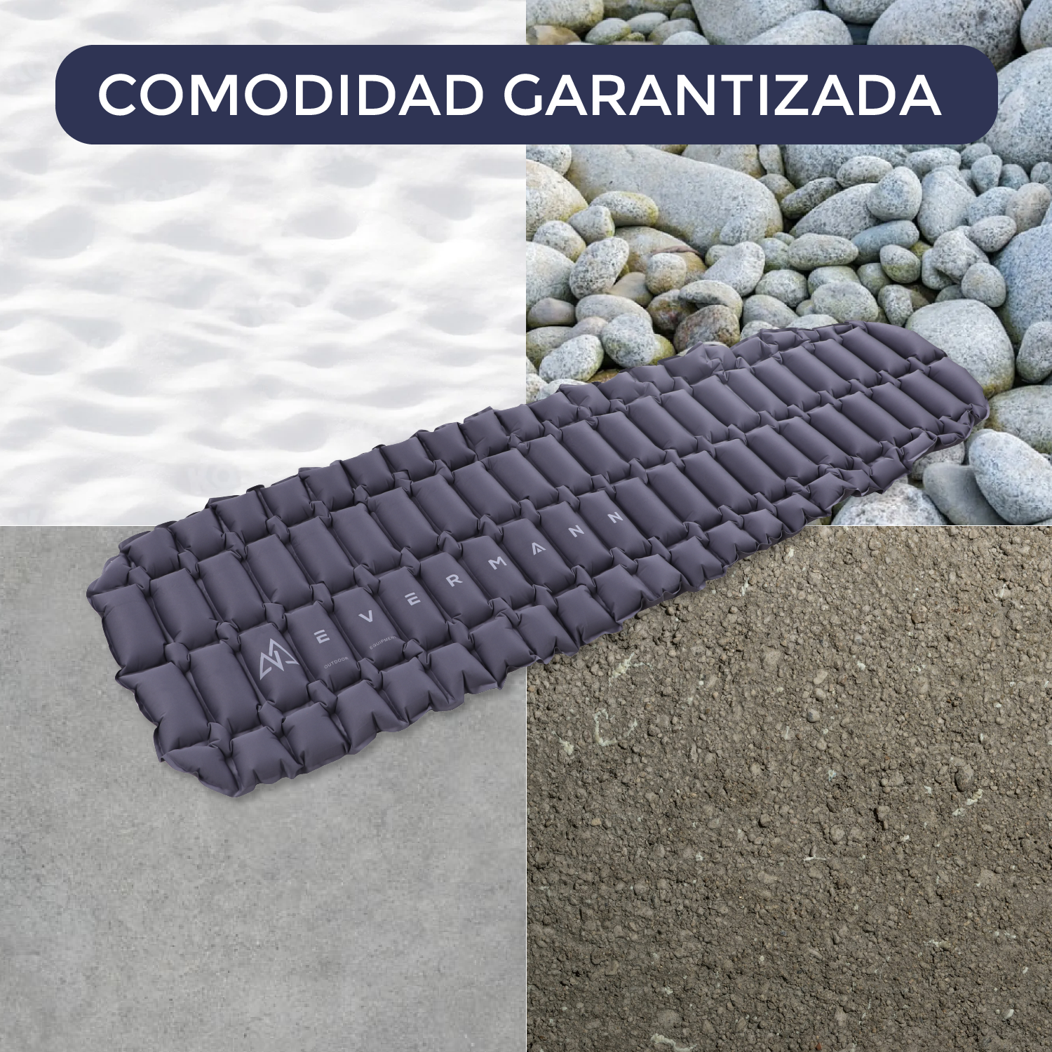 Ligero, compacto y ultra cómodo, el Air Mat Evermann es el complemento perfecto para tu sleeping bag. Aísla del frío del suelo y brinda una capa extra de confort para que descanses mejor en cada aventura. Fácil de inflar, resistente y fácil de empacar.